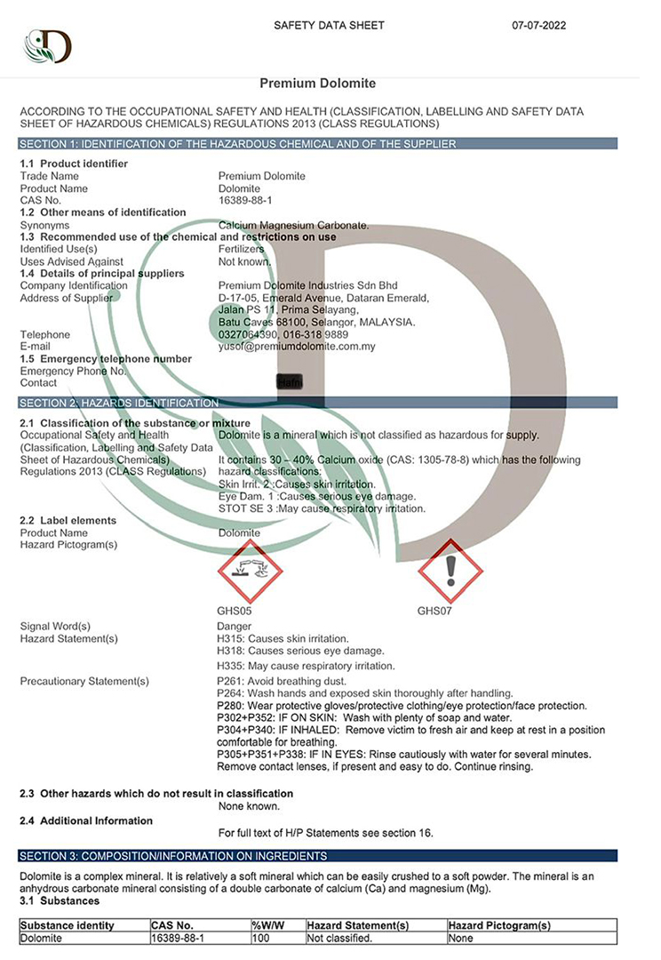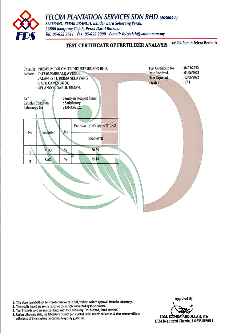 Rich in magnesium and calcium nutrients, effective in neutralizing soil acidic PH, resulted in harvest excellent produces.